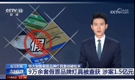 11月8日,央视报道重庆公安机关破获“9·15”特大制售假冒品牌灯具案。该案假冒品牌照明灯具成品、半成品9万余套,假冒商标等包材28万余套,挽回企业经济损失300余万元,扣押物品涉案价值近1500万元,涉案金额高达1.5亿元。