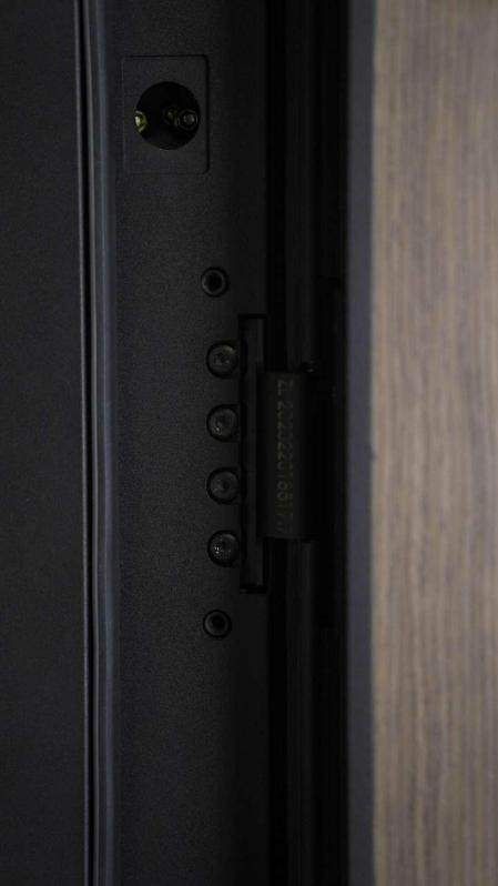 铰链也就是合页,它承载着顺畅开关和承重的作用。明铰链肉眼可见,承载力强但是不够美观。暗铰链隐藏在门板后边,从外面看没有突起物,美观度高,也更加安全。无法在外面通过破坏铰链来达到破坏防盗门。王力机器人智能安全门X30MAX选用6维可调暗铰链,承压能力更强,灵活度更高,能够更好的保证门体的稳固。