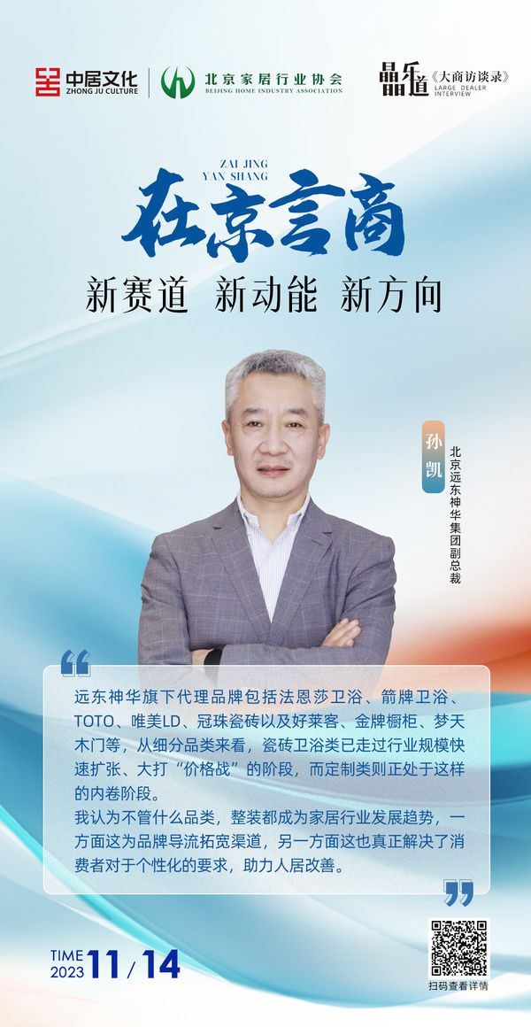 北京远东神华集团副总裁 孙凯:远东神华旗下代理品牌包括法恩莎卫浴、箭牌卫浴、TOTO、唯美LD、冠珠瓷砖以及好莱客、金牌橱柜、梦天木门等,从细分品类来看,瓷砖卫浴类已走过行业规模快速扩张、大打“价格战”的阶段,而定制类则正处于这样的内卷阶段。
