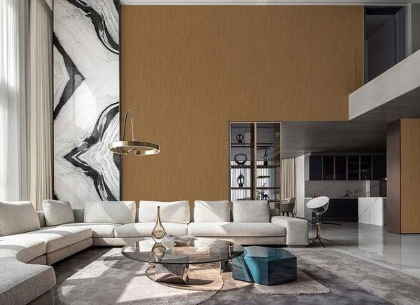 重塑优雅的空间,百搭基础的驼色,温润不张扬,自然又摩登,总能带给人沉稳舒适的感觉,仿佛寒冬里一杯温暖香醇的摩卡,带来厚重的安全感和质朴的归属感。暖驼色的天洋墙布装饰墙面,可以轻松塑造一个低调的质感空间。