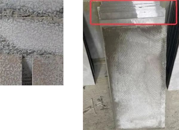 从现场呈现及刘先生的描述判断砖背在施工双组份背胶时,操作同样有误:背胶并未按比例调配,乳液偏多,粉料偏少。