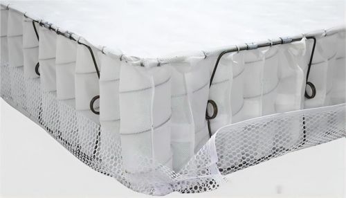 整网弹簧是连接到一起的,一个地方受力,会带动整张床网共同受力。因此,整网弹簧不仅支撑力强,而且支撑很平稳。