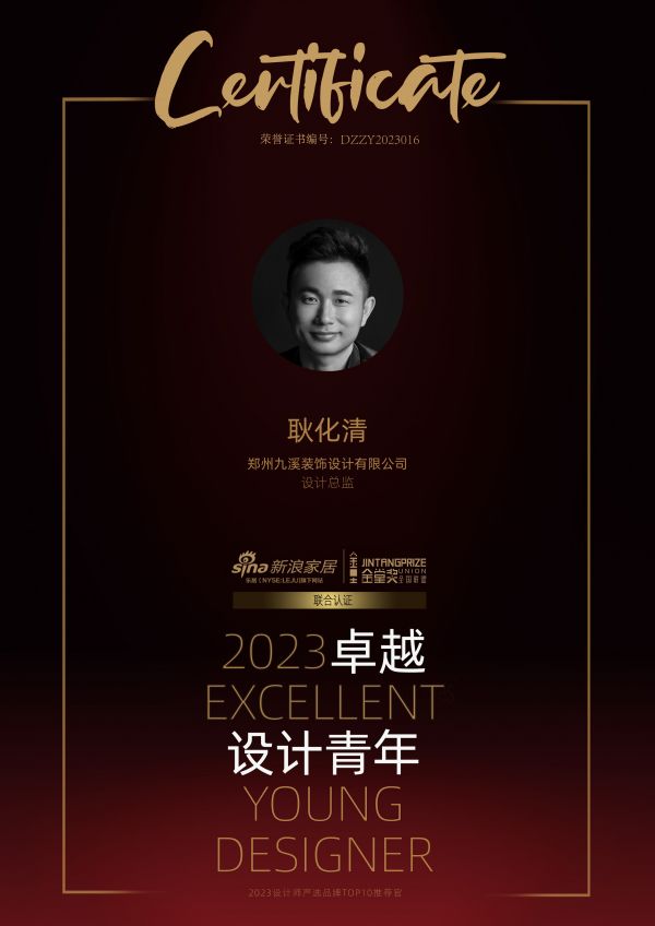 【耿化清】:获得“2023卓越设计青年”是一种荣誉,也是对我个人设计生涯的一种阶段性肯定。未来我们将继续努力,探索空间设计,给客户带来更美好的生活体验。