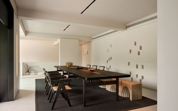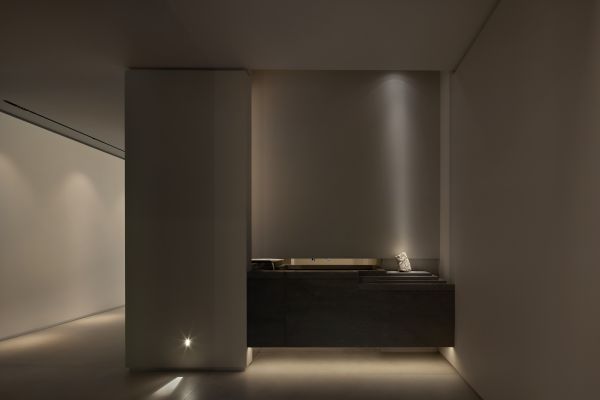 在这个无色建构空间里,以光为媒介,关注工作的人在空间里的互动性,以及光在空间出现的灵动。而静溢沉静的水及无尽灰白的颜色则赋予我们对抗时间与空间衰减的力量。