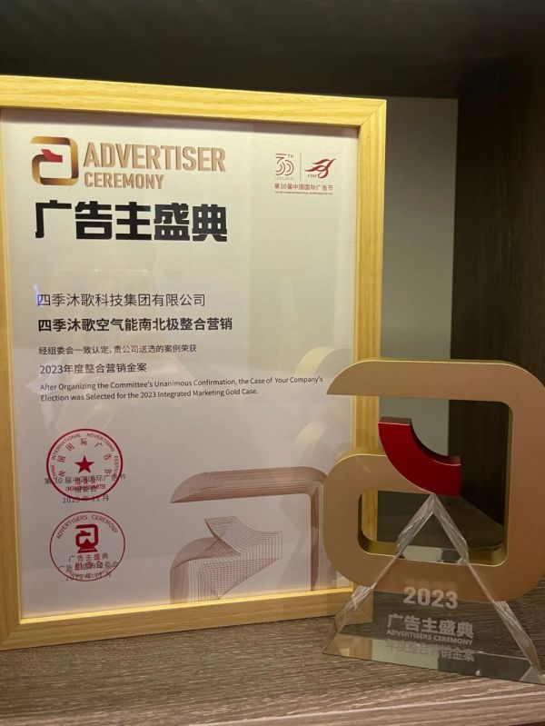 在这场兼具规模性与影响力的行业年度盛事上,四季沐歌凭借《空气能南北极整合营销案例》从众多品牌营销案例中脱颖而出,一举斩获中国国际广告节“2023年度整合营销金案”。这一荣誉,不仅是对四季沐歌在品牌建设、品牌营销传播方面的突出实力和创新能力的高度认可,也为四季沐歌在数智时代的内容营销“破圈”注入源动力。