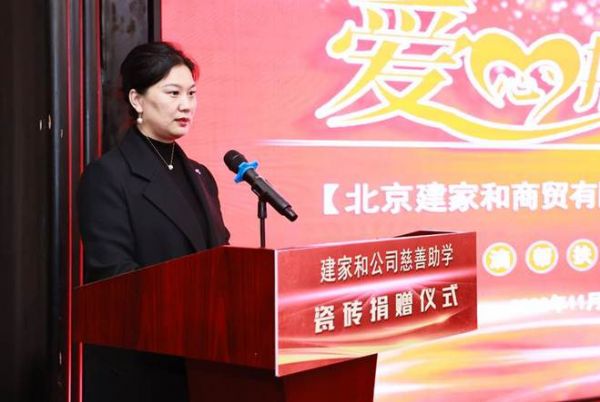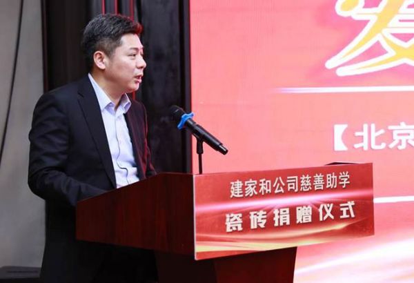 北京建家和商贸有限公司总经理罗艳致辞表示,教育是社会进步的基石,对社会的未来发展有着至关重要的影响。作为企业响应党和国家的号召,在发展之余积极回馈社会,为社会做出贡献,是企业应尽的社会义务。希望通过今天的捐赠,能够为学校的教育环境带来一份积极的改变,为同学们的学习生活带来一份积极的推动。希望这批诺贝尔瓷砖,能够成为学校的一道亮丽风景线。同时感谢北京陶瓷商会和诺贝尔公司对此次捐赠的大力支持。