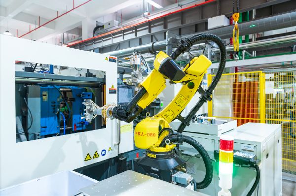 九牧绿色黑灯工厂内,机器人手臂正在工作
