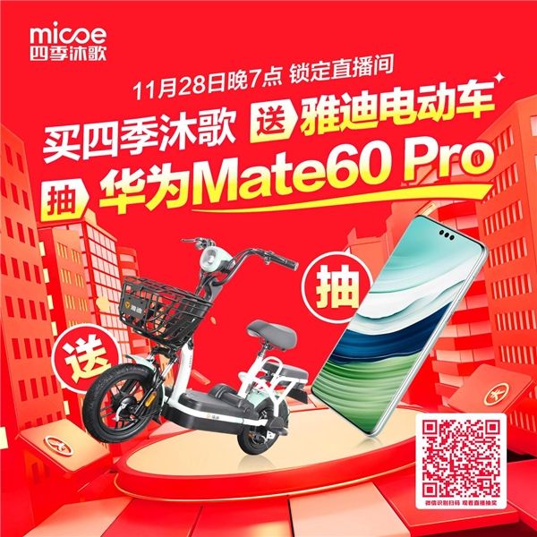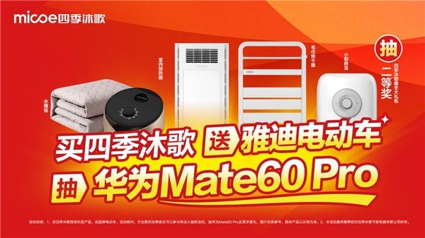 而为了给广大消费者更加贴心的温暖和回馈,四季沐歌特别在全国范围内发起了"买四季沐歌送雅迪电动车抽华为Mate60 Pro"福利季活动,引起了众多消费者的热情参与。目前,第一轮活动大奖已经全部送出,万众瞩目的第二轮大奖也将于11月28日晚四季沐歌直播间惊喜开抽。