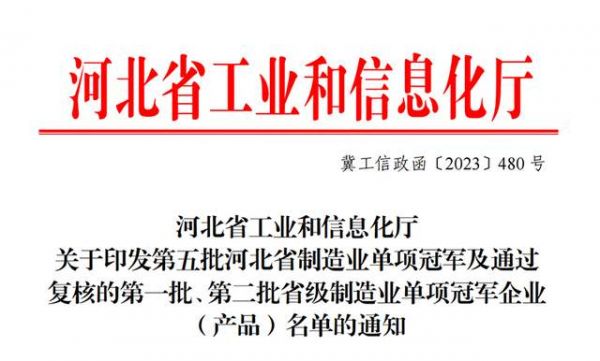 河北晨阳工贸集团获评省级制造业单项冠军企业