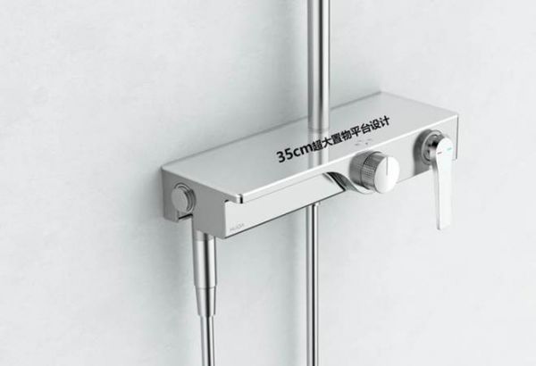 35厘米超大置物平台也很得茜茜喜欢,超大的平台可以轻松容纳沐浴露、洗发水、护发素等,日常洗浴用品随用随取,再现经典实用设计美学。同时,圆角的钢化玻璃不仅颜值够用,也更加安全。但更让她惊喜的是,虽然平台超大,但是不易刮花,不留水渍,因此也就不需要特别细心的打理,长时间使用质感依旧。