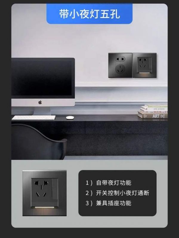 好处:如果是独立小夜灯会占用插孔位置。小夜灯五孔可以使小夜灯、插座同时使用且互不干扰。