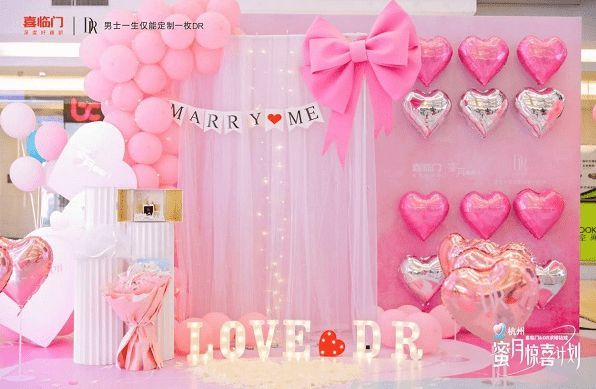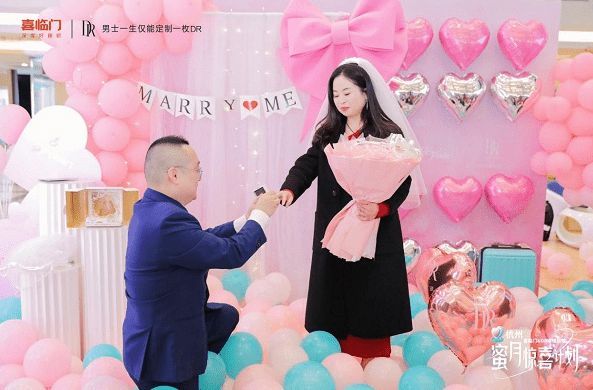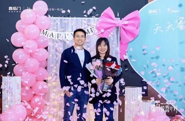 在杭州的魏女士与王先生同样非常的幸运,结婚多年的他们,家里一直用的是喜临门产品,趁这次蜜月活动的超多福利和优惠,特地进行了全屋床垫、软床和沙发的换新,并抽中了蜜月惊喜计划的大奖名额。“此前,我们因多种原因而耽搁的求婚仪式,这次终于是补上了,非常感谢太太的一直以来陪伴和支持,也很感谢喜临门和DR钻戒能让我们拥有这么浪漫又惊喜的回忆”求婚仪式现场王先生如是说。当漫天的粉色气球从天而落,浪漫的音符缓缓流淌,王先生为魏女士戴上了DR求婚钻戒, 戒指和独特的仪式感,让蜜月般的甜蜜弥漫心间,参与活动的每一个人都被他们的爱意所感染,也为他们送上最好的祝福!