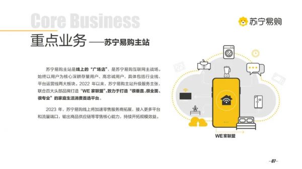 2023年,苏宁易购将持续聚焦“家庭场景解》决方案”,加速零售服务商升级,实现“买家电到苏宁易购”向“定制家庭场景到苏宁易购”的升级。通过供应链和零售运营能力提升,深化开放合作和零售赋能,坚定全渠道发展,深化区域布局与本地化经营,苏宁易购零售服务商模式进入全体系、全渠道协同拓展新阶段,正在迈向高质量发展新征程。