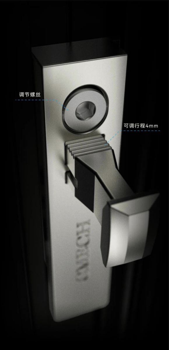 CMECH希美克这套重型推拉门在锁点上还采用了人性化调节设计,可通过调节螺丝快速实现调节高度功能,操作更加便捷。