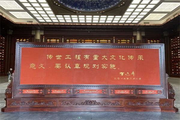 为了时刻铭记大不同团队在承建过程的卓越能力和专业精神。华厦·大不同对国家版本馆文瀚厅进行精准复刻,现场的家具、木作都是馆内同款,准确还原每个细节的设计和布置,以保持原始的独特韵味。
