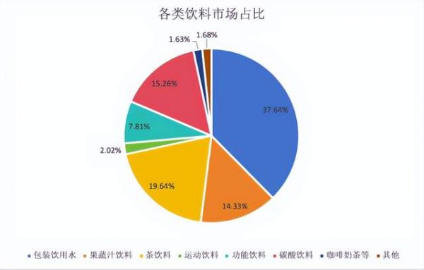 各类饮料市场占比:果蔬饮料占比19.64%占其他饮料市场一半的推广