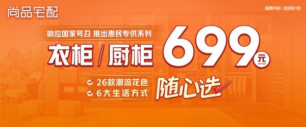 尚品宅配积极响应国家政策,于9月初发布“699惠民系列”,衣柜699元/㎡,厨柜699元/m,提供26种潮流花色,并严选环保健康板材与五金配件,这一重磅惠民政策为激活家居消费市场带来强劲动力。“优质的生活并不应该仅仅是奢侈品的代名词,而应该是每个人都可以享受到的。”尚品宅配相关负责人表示,希望通过699惠民系列,让更多的人享受到高品质家居生活带来的便利和舒适。
