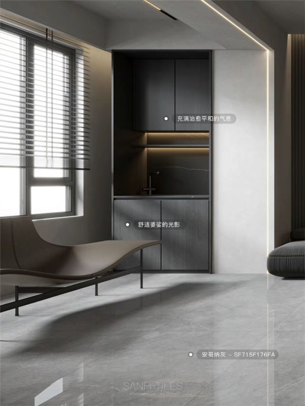 极简风格的装修注重简约、实用和舒适,强调以少胜多,以宽敞、开放的空间布局。兴辉瓷砖纳维亚·冰白打造的极简风格,将目之所及的元素、装饰和家具都简化到极致,摒弃繁杂元素,以最低限度的装饰实现功能性和视觉上的整洁。使用直线、简洁清晰的线条和几何形状打造现代感,偏爱黑、白、灰、棕中性色调,简洁有力,明亮清爽的氛围感呼之欲出,不自觉让人放松下来。