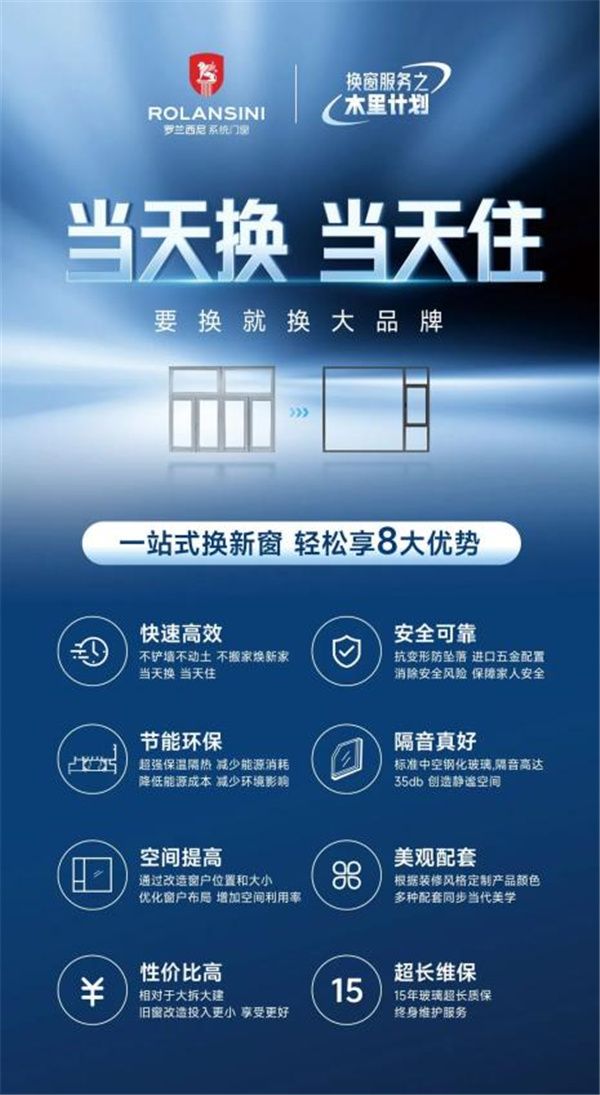 罗兰西尼系统门窗重磅推出换窗服务“木星计划”,当天换当天住,提升人居品质,助力实现美好生活