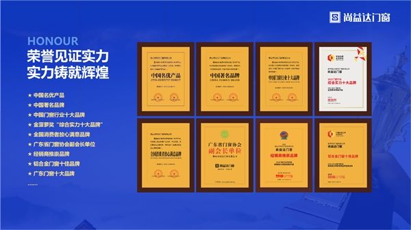 尚益达门窗聚焦国家知识产权建设,力争将自身打造成为具有全国影响力的高标准、有创新性的企业,以技术领先、市场广阔、知识产权优势明显的创新型企业姿态释放更大的价值。目前,尚益达门窗凭借创新的思维、拼搏的精神以及过硬的技术,不断超越自我,创造了一个又一个辉煌的成绩。今年,尚益达门窗荣获广东省门窗协会“门窗创新”奖,品牌实力再获见证!