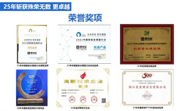 作为成立于1998年的老牌企业,便洁宝专注于智能马桶的研发、生产及销售,是国内第一家生产智能马桶的专业厂家,发展至今已有25年历程,殊荣不断。