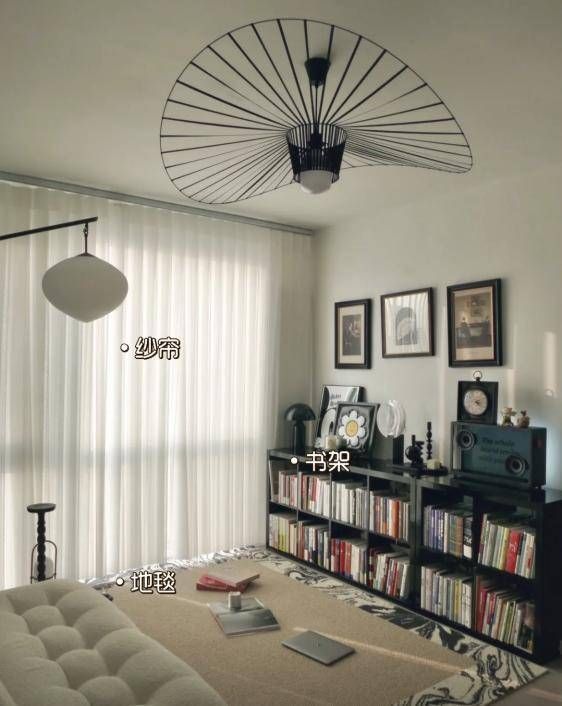 可以把阳台纳入客厅范围,安置个舒服的沙发、书桌椅或地毯,纱帘挡住暴晒的阳光,调节到适合阅读办公的光线,十分惬意。如果想要一些氛围感,可以铺个地毯,平时亲子互动也更方便。