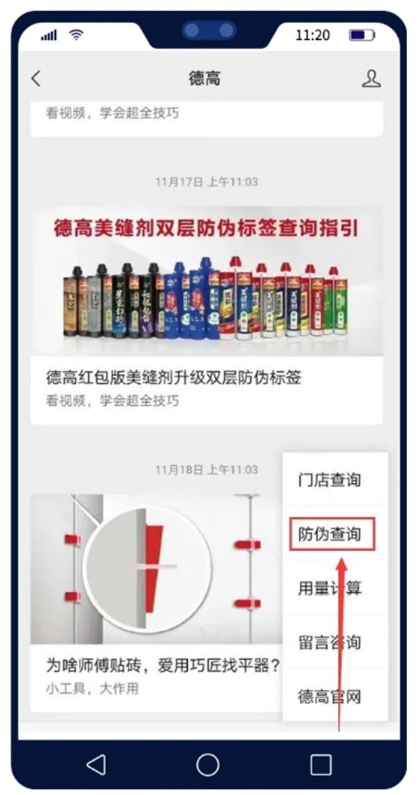 点击公众号右侧菜单栏—实用助手—防伪查询
