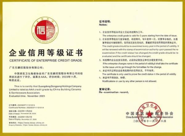开展企业信用评级,是国家建立诚信社会的重要举措。AAA级信用企业是最高的企业信用等级,需要满足财务状况稳定、经营状况优秀、透明度和披露程度高以及风险控制能力强等基本条件。此次东鹏控股荣获“企业信用评价AAA级信用企业”称号,是对其品牌实力与企业信誉的高度认可。