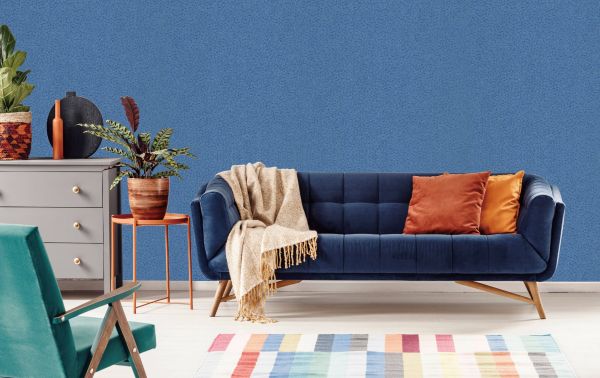 克莱因蓝在各个领域都有着很深的影响,一度成为了时尚风向标。在人居领域,威泽墙布就将“克莱因蓝”元素运用于墙布产品,打造出一种治愈浪漫的居住体验。威泽“克莱因蓝”墙布可以搭配低饱和度的克莱因蓝沙发和暖色调地毯,辅以放在充满活力的橙色圆形茶几上的绿植,还有让人感到无比柔和的莫奈灰配色柜子,总体给人一种极致温柔、内敛的感受。这种环境最适合拿起一本书,静静地阅读、思考,享受午后的惬意慵懒。