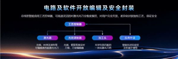 设备厂商可以根据进入的应用领域不同、所需不同的光斑特性自行编写,且封装在工艺卡上,形成自己独特优势点。通过总线型智能应用工艺控制器实现自定义激光器:客户可高速灵活的对激光光刀全维度操控,并加密封装确保绝对安全。