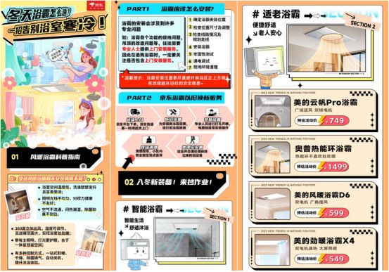 用户对于沐浴体验的多元需求已成为不容忽视的事实,基于此,京东浴霸与KA品牌联合甄选,共同推出了超多浴霸趋势好物:智能风暖浴霸,具备多种控制方式,一站式实现取暖、干燥、换气等,品质与效率的“智能家电”,可以轻松提升沐浴体验;除菌风暖浴霸,深度净化空气,抑菌除臭,守护全家人的健康;适老风暖浴霸,恒温处处暖,操作简单,贴心照顾老年人的使用感受。以旧换新省心帮助用户告别洗澡寒冷,实现舒适沐浴,温暖过冬!