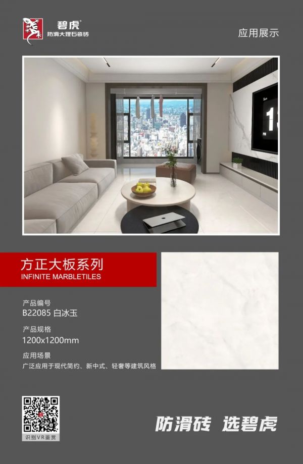 未来,碧虎将以消费者需求为导向,竭尽全力研发适合当代人审美和功能需求的瓷砖。全心全意为消费者打造全屋安全方案,致力于解决地面行走安全。