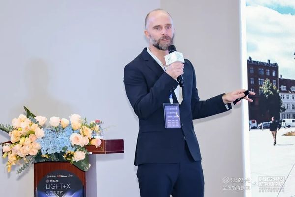 ▲ 思码光全屋智能照明总经理-郜盛夏以“智慧自然光环境中的原创动态淡彩光魔法”为主题进行演讲分享
