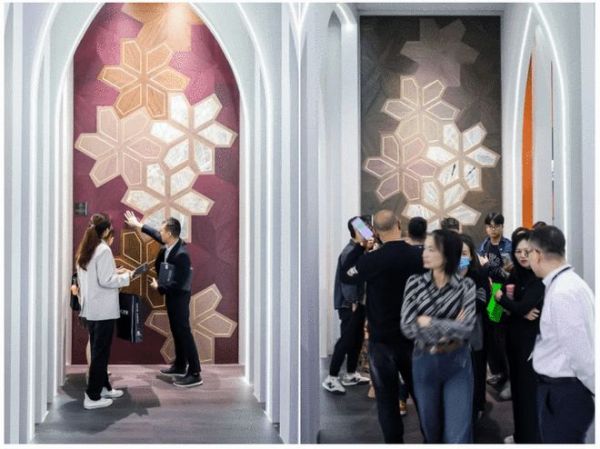 必美地板谭天谦:必美的墙地一体化工作在十年前就已经成功开展了。我们这里展示的地板是意大利三位建筑设计师之一马可·皮瓦的设计作品。这些产品不仅可以用作地板,还可以放置在墙面上,成为护墙板和背景墙,可见地墙一体化在以往的架构中已经得到了成功的应用。