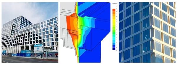 项目团队采用了呼吸式幕墙系统,为了配合新颖的立面设计同时兼顾满足严苛的建筑节能标准和绿色建筑三星标准设计,项目方与暖框科技进行深入的热工技术配合,并采用最新的高性能幕墙隔热毯技术,成功打造更低幕墙U值和无冷桥外墙的高性能抗结露设计,进一步提升建筑室内的舒适性和结构设计的安全性和耐久性。新技术新设计的设计使用助力打造建成了一座现代、高科技的智能化楼宇,项目以此荣获为“国家优质工程奖”鲁班奖及中国绿色建筑三星认证。