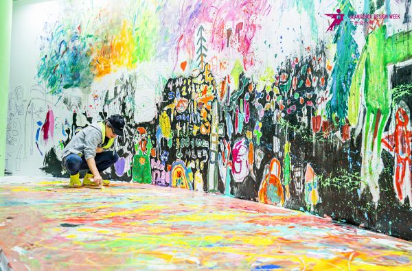 活动现场,陈林老师作为微光公益计划的首倡者,与孩童们现场共同完成了墙体及地面的绘画创作:《孩童眼里的春天》。来自不同地域不同年龄的设计师们现场挥笔为画作和微光公益计划助力。提笔描绘,落笔成诗,温暖爱意在一笔一画间向远方传递,善意在色彩翻涌中回归至最真诚的表达。