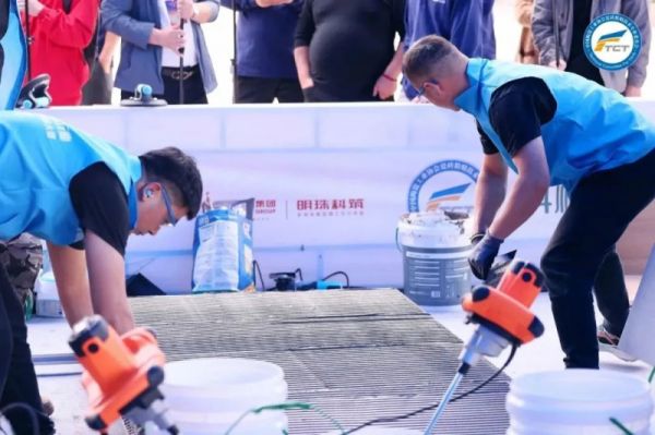 量放线、切割、磨边角、拌砂浆、批刮、拉槽、铺贴……参加本次比赛的选手们都是从业多年、实战经验丰富的资深工匠,通过专业的操作和默契的配合为大家呈现了一场高超的技术高手对决现场。
