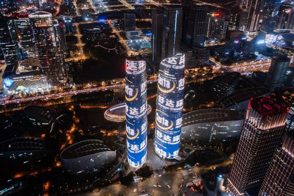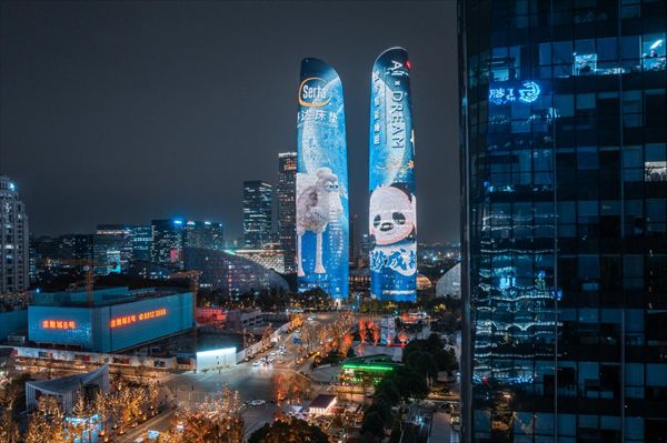 舒达羊惊喜亮相成都双子塔,打造城市炫丽风景线!