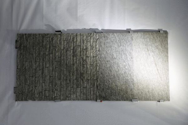 瓦尔斯:这是一款来自瑞士的材料,表面看可能平平无奇,但是凑近看是有金光闪闪的,像袈裟一样。香港上亿的豪宅也是用的这一款材料,室内外皆可使用,具有低调奢华的调性。这款产品属于限量材料,每年全球只采购100个石头,像1.8cm厚度的石材,一方将近3600元。