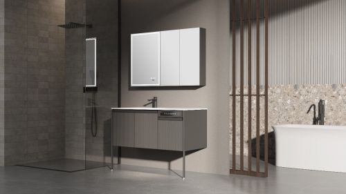 化妆镜柜也藏有乾坤:顶嵌感应灯有三色温可供选择,无论化职场妆、晚礼服妆或者晚间护肤,都能带给您最合适的灯光,映照现代独立思想。另外镜柜里藏有兼顾杀菌与收纳功能的牙刷消毒柜,满足多人家庭成员共同使用,更全面得保障您的牙齿健康。镜柜还可增设冰箱小柜,帮助您存放需要低温保存的化妆品或药品,十分便利。