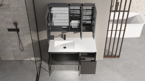 这款浴室柜还有多种尺寸可供选择,适应不同宽度的浴室空间,它还贴心考虑到都市居住面积的相对紧张,每一分空间都非常珍贵,因此在空间利用上非常强大,通过采用挂墙式、悬浮式、地柜式等多种形式的组合,让您的浴室更加宽敞和舒适。