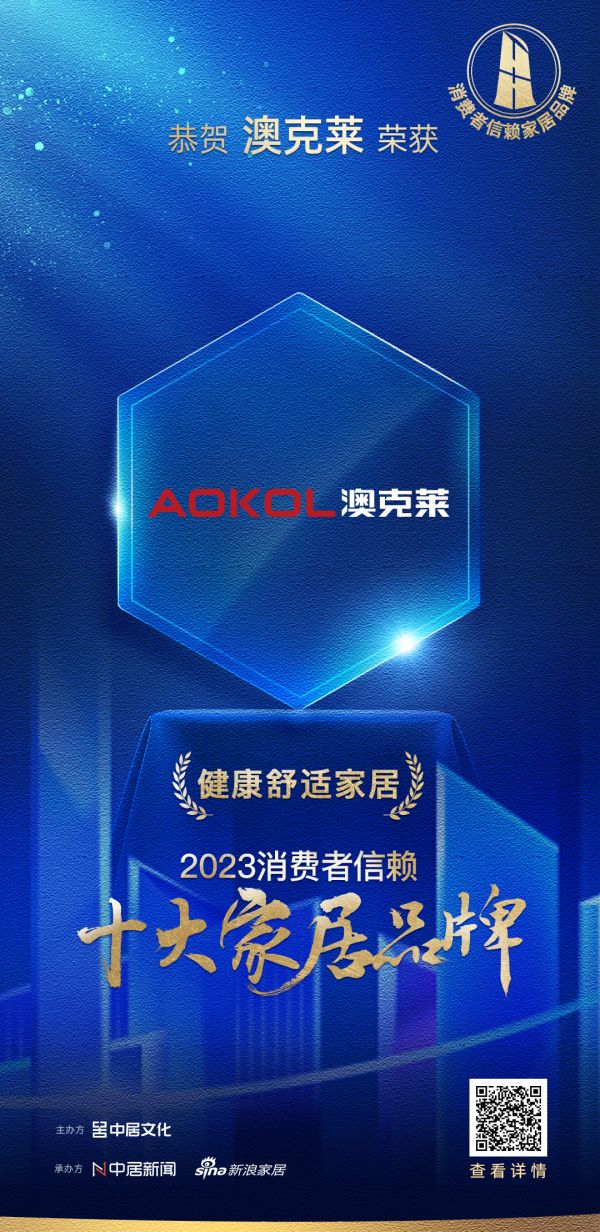 喜报!澳克莱荣膺2023消费者信赖十大健康舒适家居品牌!