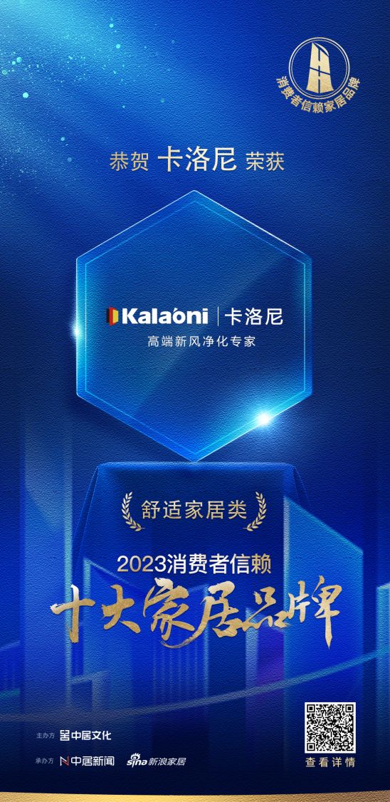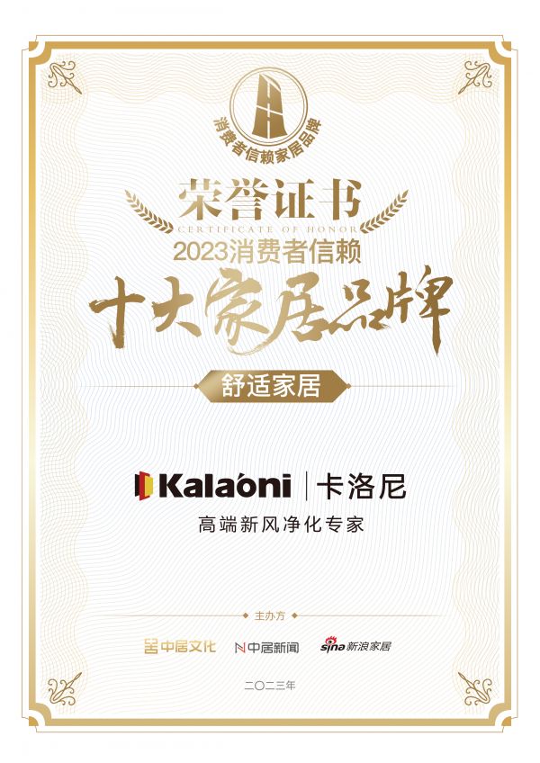 其中,卡洛尼荣登「2023消费者信赖十大家居品牌」舒适家居榜单!体现了广大家居消费者对卡洛尼的充分信任与肯定。在品质至上的潮流中,卡洛尼不断追求卓越,成就完美品质,创造极致体验,让消费者享受完美生活,实现质量与舒适的双赢,成为新风行业中的佼佼者。