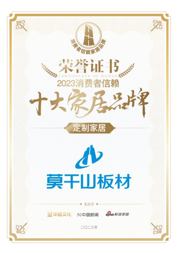质行千里·品耀家居 | 莫干山板材荣登「2023消费者信赖十大家居品牌」辅材榜单!