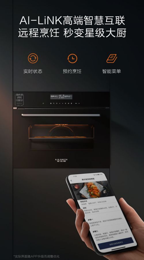 该产品还接入了AI-LiNK全联全控智慧中枢,内置多种智能菜单,助您从厨房小白轻松进阶星级大厨~预约烹饪、实时状态更新,即使不在厨房也能远程烹饪。