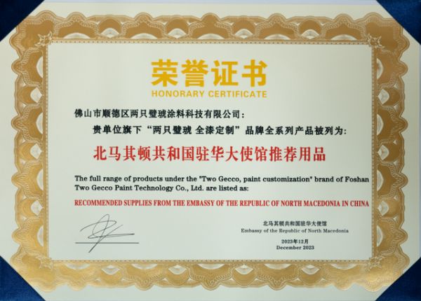 近日,备受瞩目的好消息传来,“两只璧琥全漆定制”全系列产品入选北马其顿共和国驻华大使馆推荐用品。这一殊荣不仅是对我司两只璧琥产品质量和服务的认可,更是我们积极响应国家政策、勇于走出国门的品牌实力体现,见证着品牌的高光时刻!