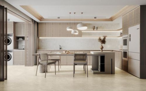 洞石被誉为“艺术之石”,因表面布满孔洞而得名,独特肌理即正因为它厚重的历史沉淀;而莱姆石则被称为“生命之石”,深藏海底亿万年,由岩屑、贝壳、珊瑚及其它海洋生物融合,同样彰显着苍劲有力的生命力。箭牌瓷砖「寻」系列雅石集运用洞石、莱姆是作为瓷砖原石石材灵感,提取出其坚韧的文化意蕴与简朴自然的气息,带来磅礴大气的山石元素家居自然空间,成就原石石纹瓷砖的“豪放派”优秀之作。