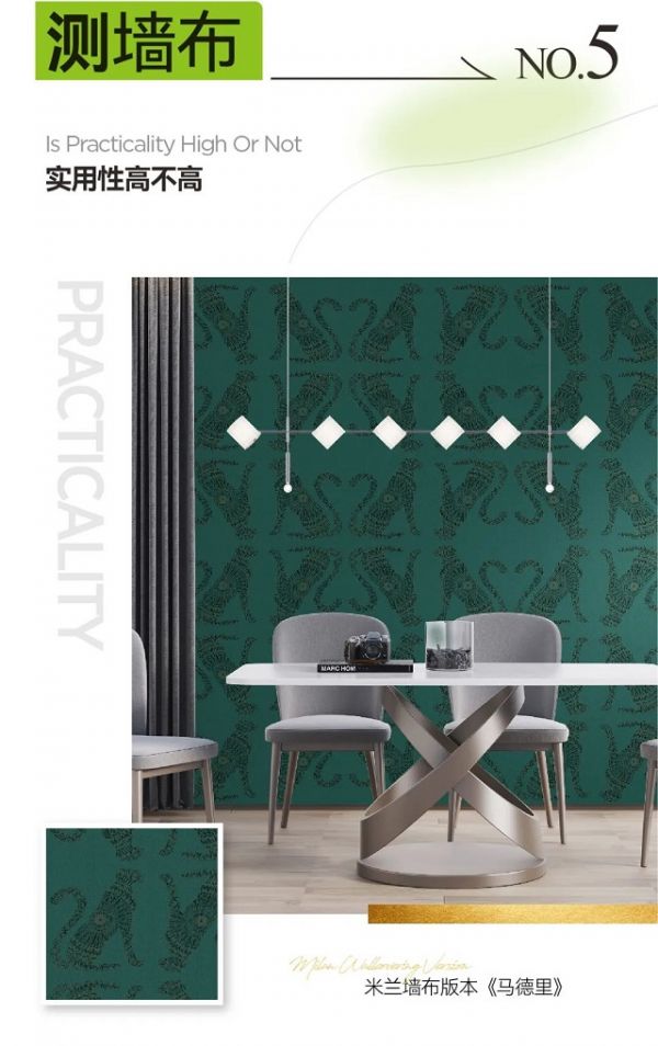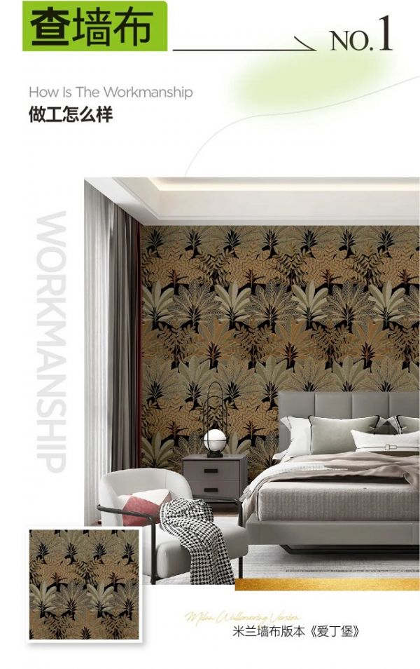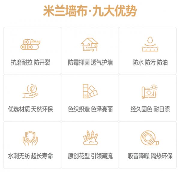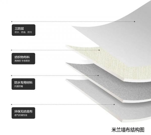 米兰墙布采用全交叉水刺无纺底布,韧性好手感柔软,透气性佳;