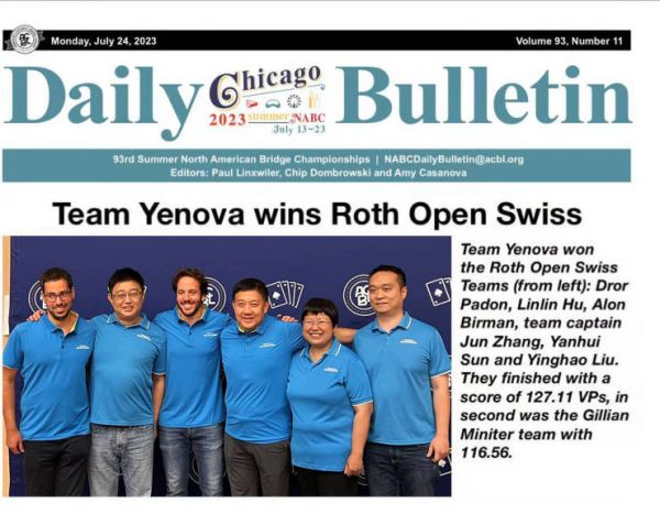 北京时间7月24日,业之峰桥牌队再传捷报,成功斩获2023北美桥牌夏季大赛瑞士制团体赛冠军。这是继2018年在夏威夷北美秋季大赛夺得该项冠军之后,业之峰队再次摘得这一桂冠。