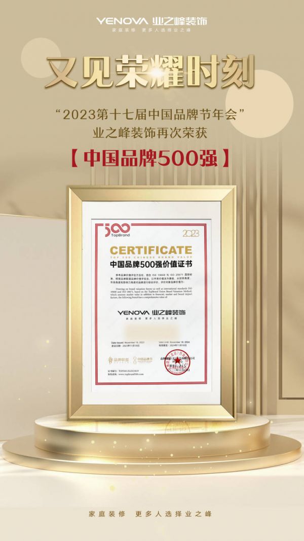 连续两年荣获“中国品牌500强”这一荣誉,意味着业之峰品牌在行业领导力、市场表现、消费者认知程度等方面已取得巨大的成就,成为家装行业的领先企业。
